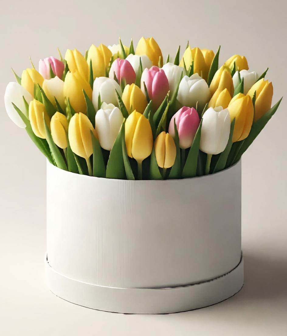 Mixed Tulips in Hatbox – Elegant & Colorful Floral Gift Delivery in Dubai