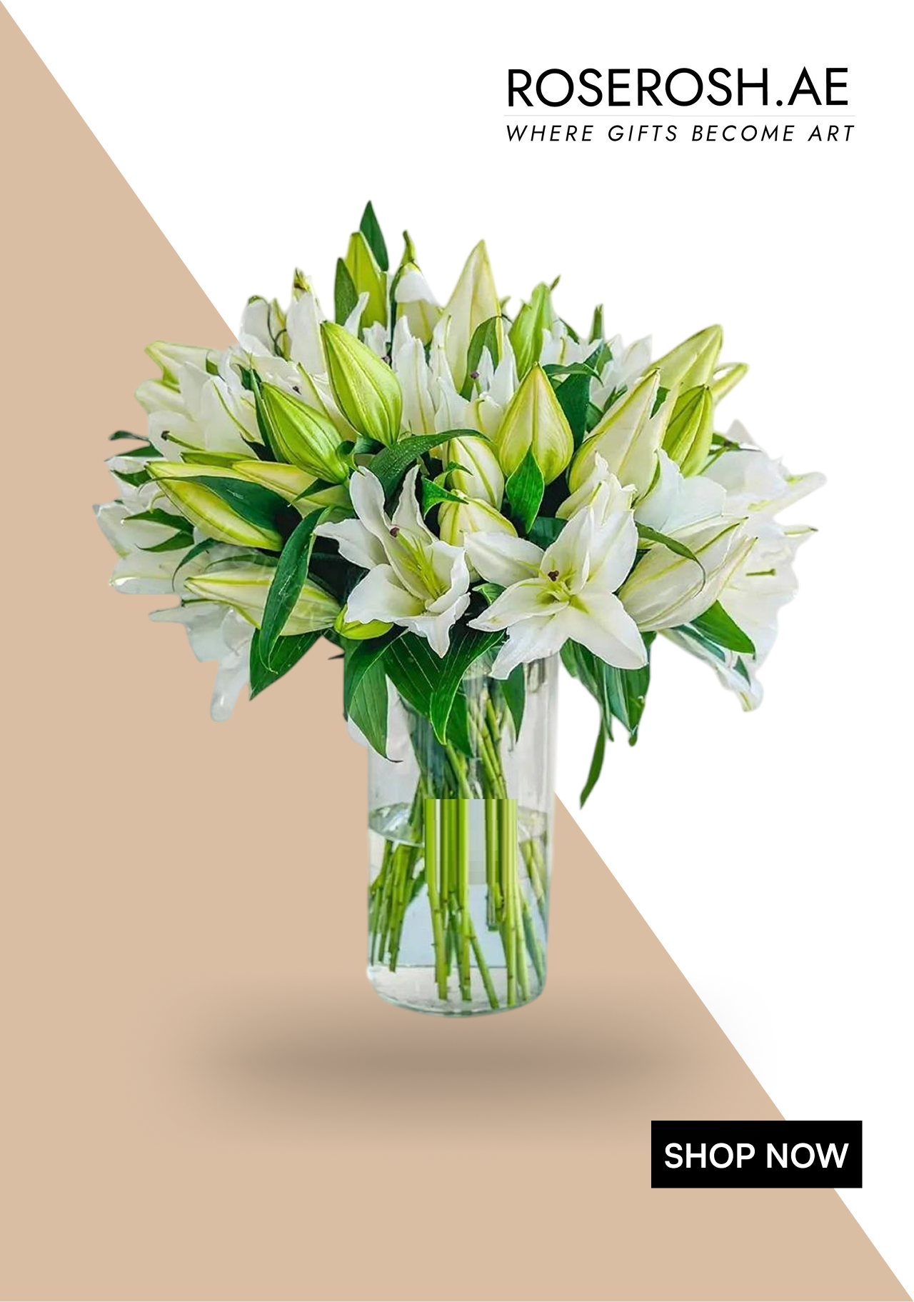 Order your lilies in a glass vase today and enjoy fast, same-day delivery across Dubai.